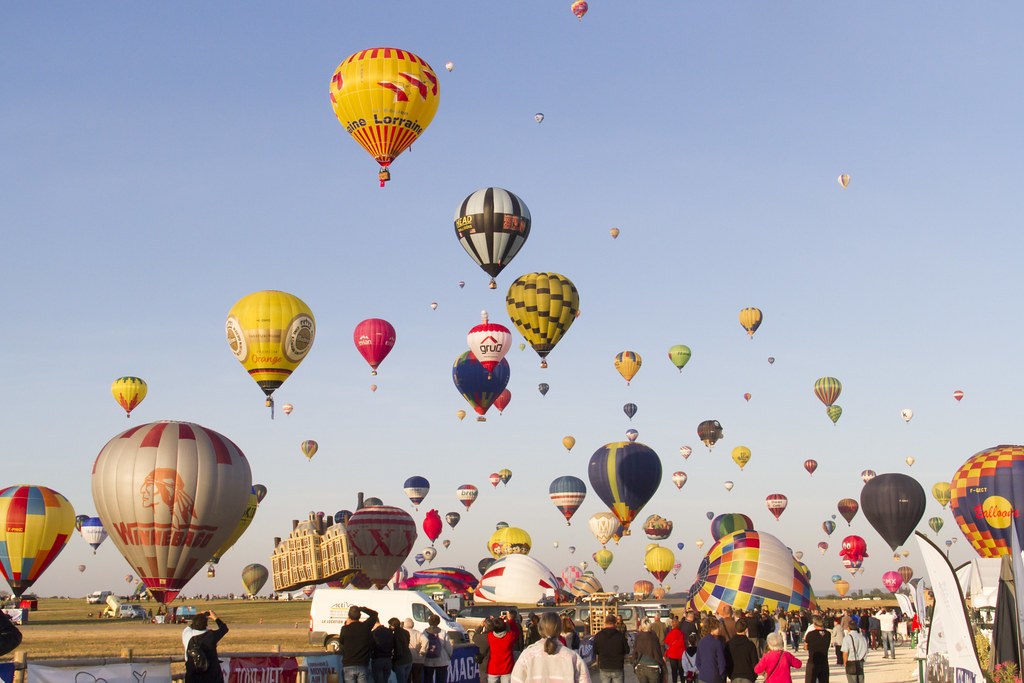 Since its creation in 1989, the event has always (or almost) taken place, the last week of july, every odd year... There is no doubt that the return of the sun has something to do with it. Üblicherweise sind 800 bis 1000 heißluftballons zugegen, piloten aus über 50 staaten und bis zu 400.000 zuschauer bei. Many media call us to confirm the possible organizing of the event.. One of the highlight is the lining up of hundreds of balloons along the aerodrom runway… several kilometers!